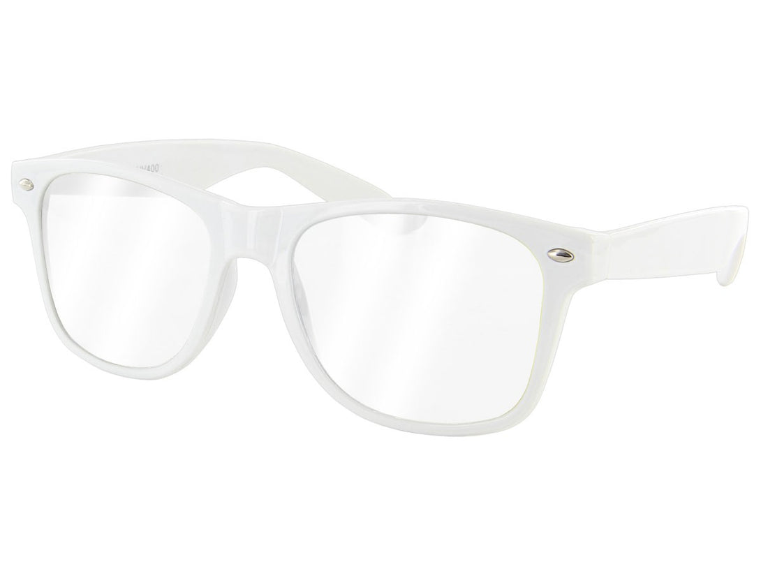 Die Nu Rave Sonnenbrille clear, seit Woody Allen ein Klassiker. Die Nerdbrillen sind nicht zuletzt auch durch den Film Blues Brothers zum Kult Objekt aufgestiegen.