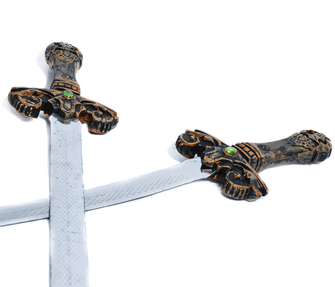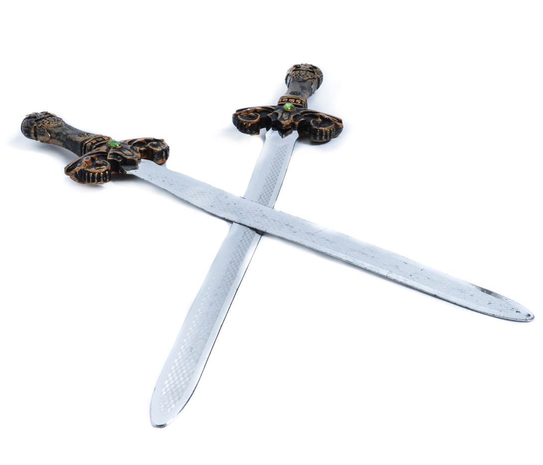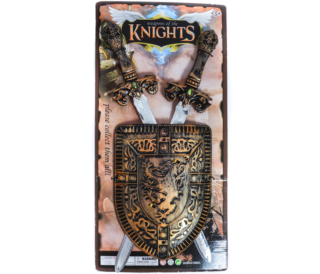 Ritterset bestehend aus zwei coolen Schwerten und einem Schild mit Halteschlaufe. Schild und Schwerter sind aus robustem Plastik. Ideal für Kinder zum Spielen. Die Klinge vom Schwert ist Silber beschichtet und gibt dem Schwert die gewisse Echtheit. Durch die detailgenauen Verzierungen ist das Set der Hingucker bei jedem Kostüm.