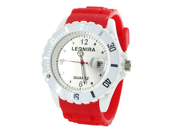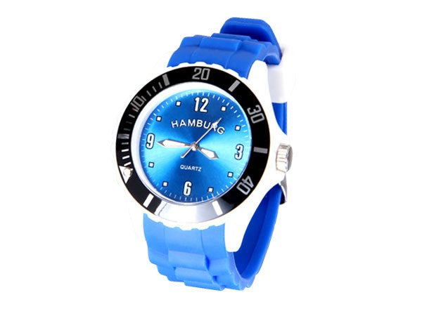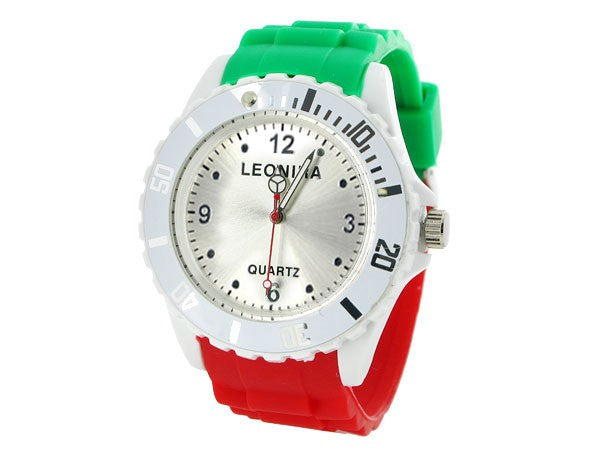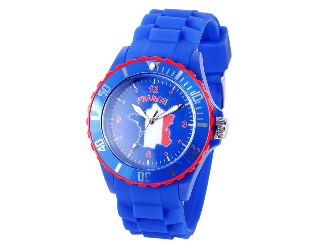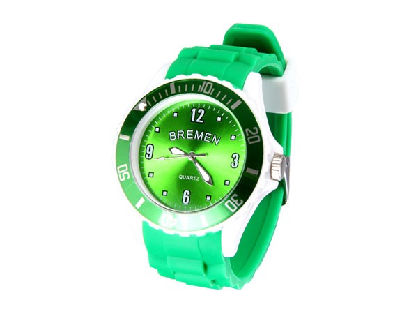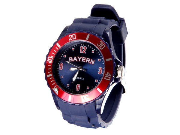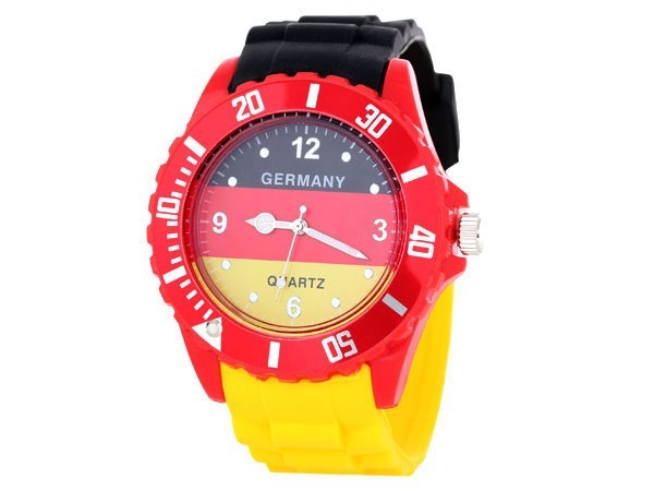 Unsere neuen trendigen Armbanduhren aus Silikon sind in verschiedenen Farben und Designs erhältlich. Die neueste Generation von Silikonuhren gibt es in runder Form in Kombination mit Länder und Vereinsfarben und einem drehbaren Zierring (Lünette)