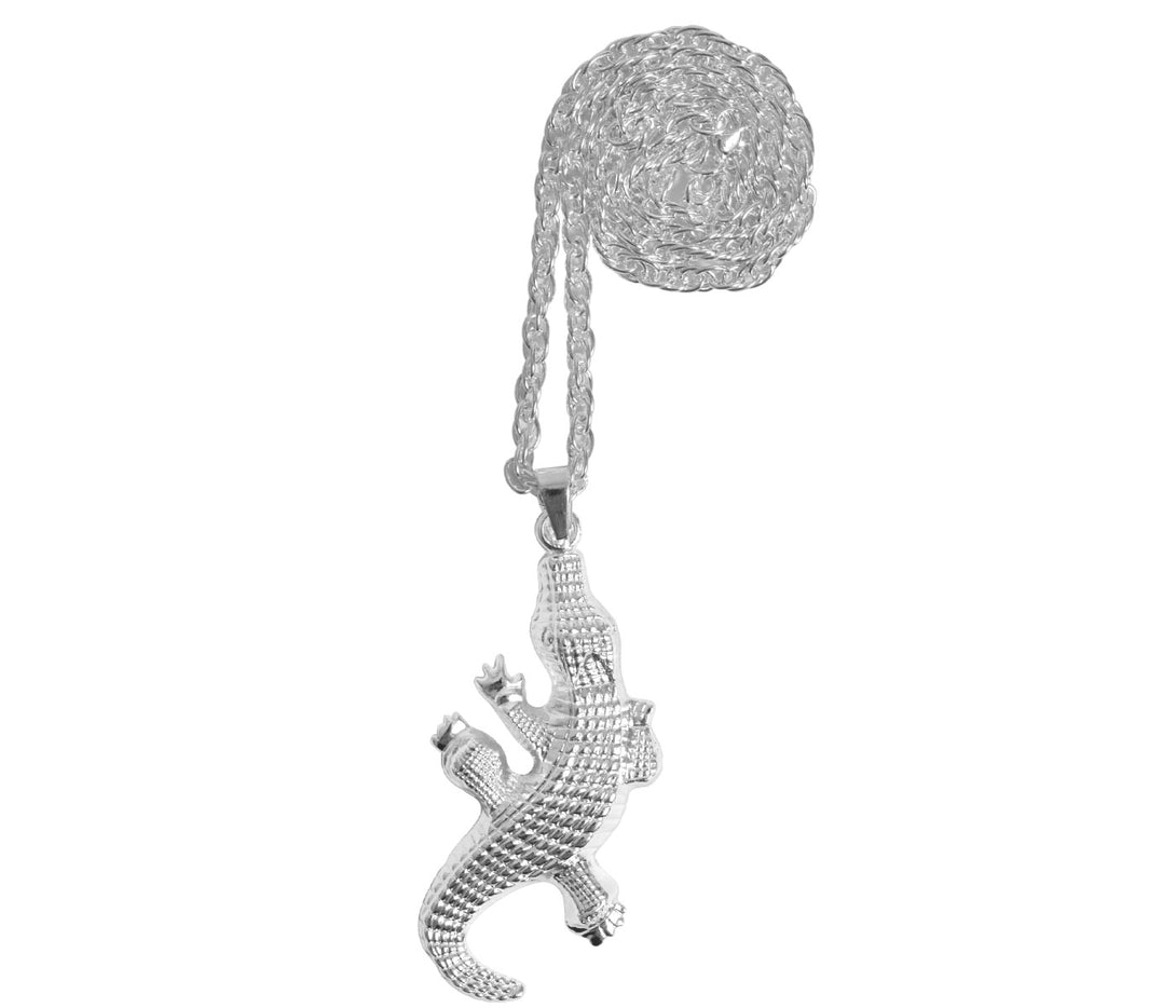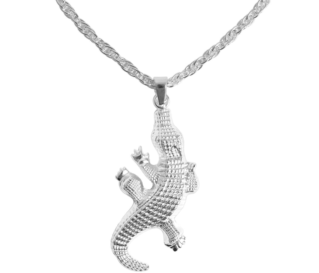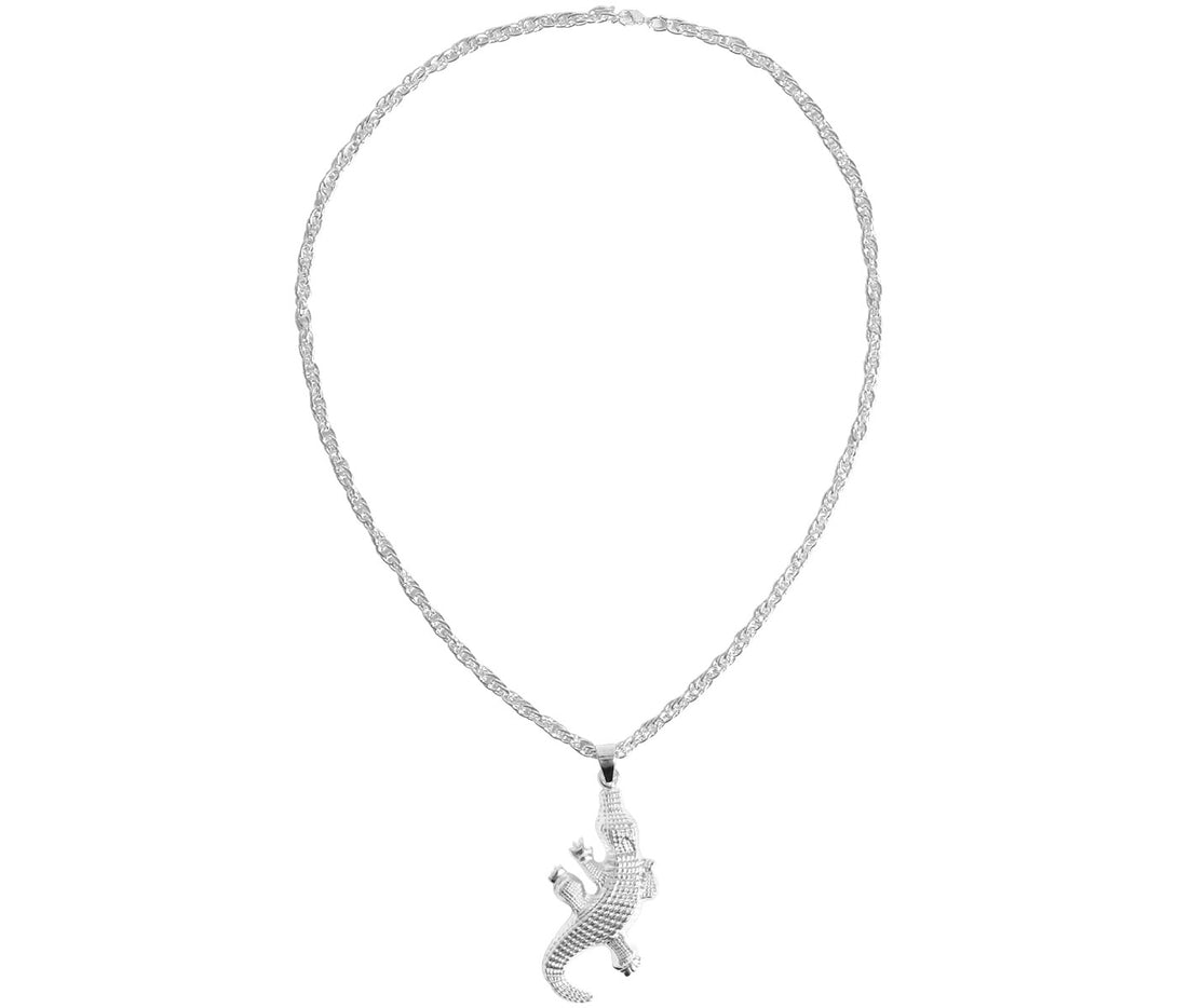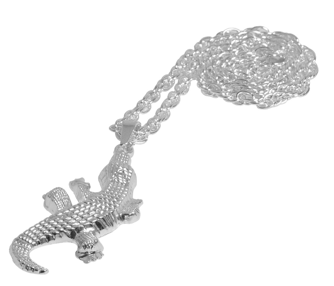 Auffällige Kette mit coolem Kokodil Anhänger lang