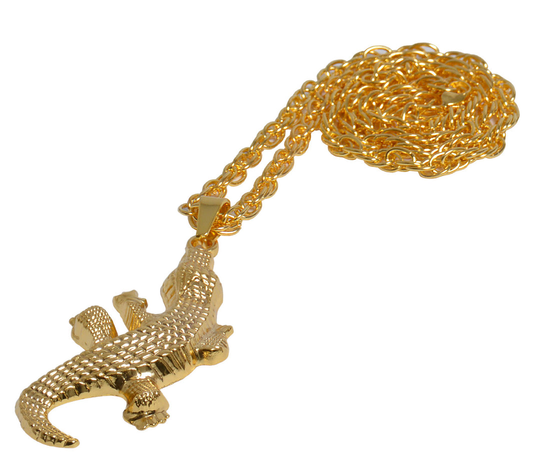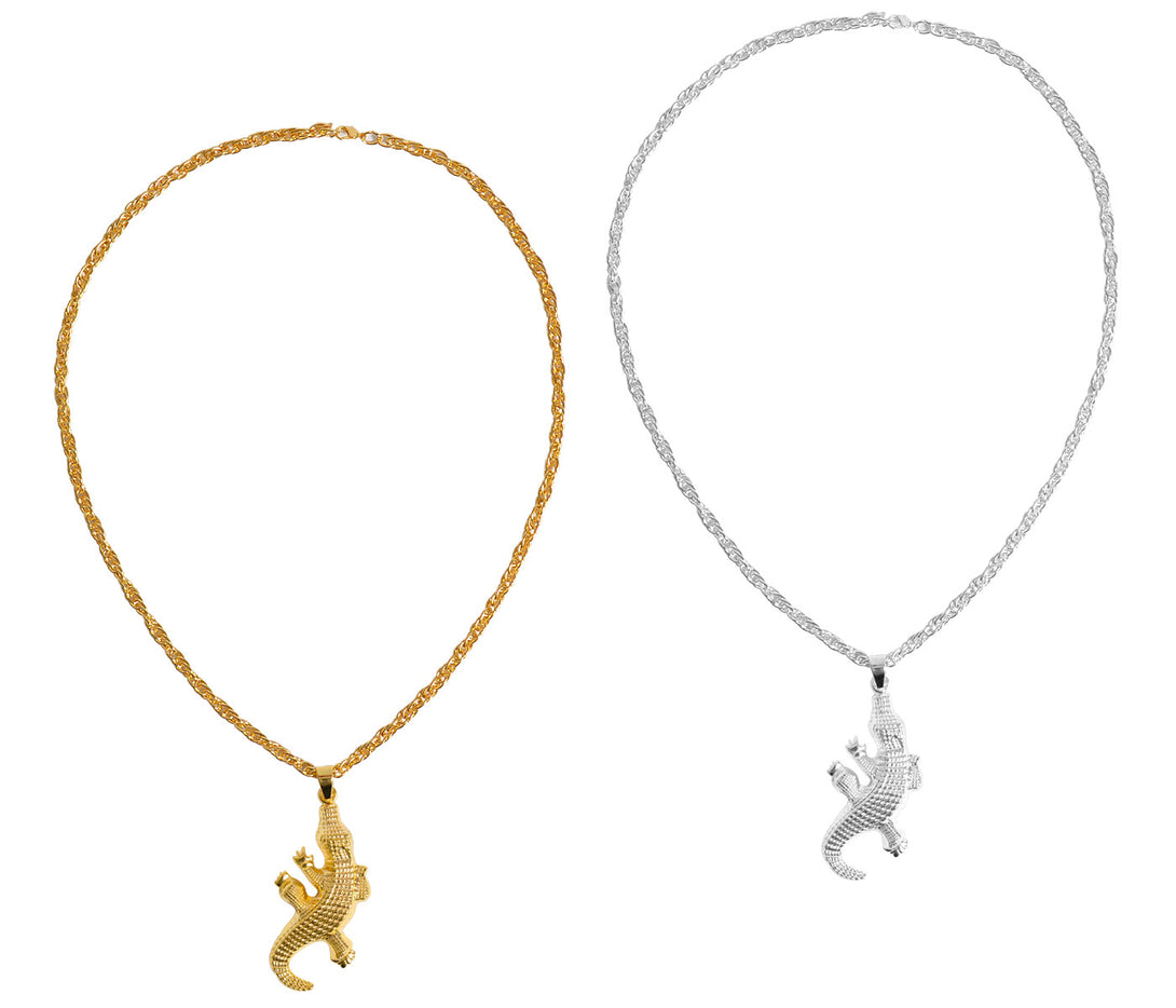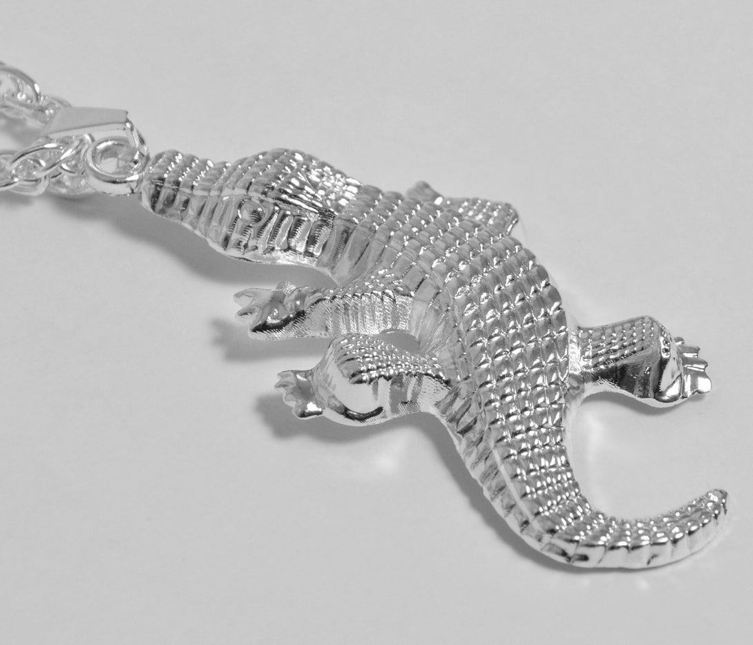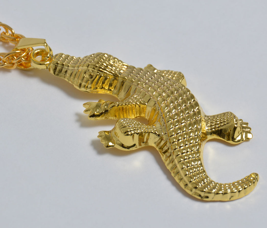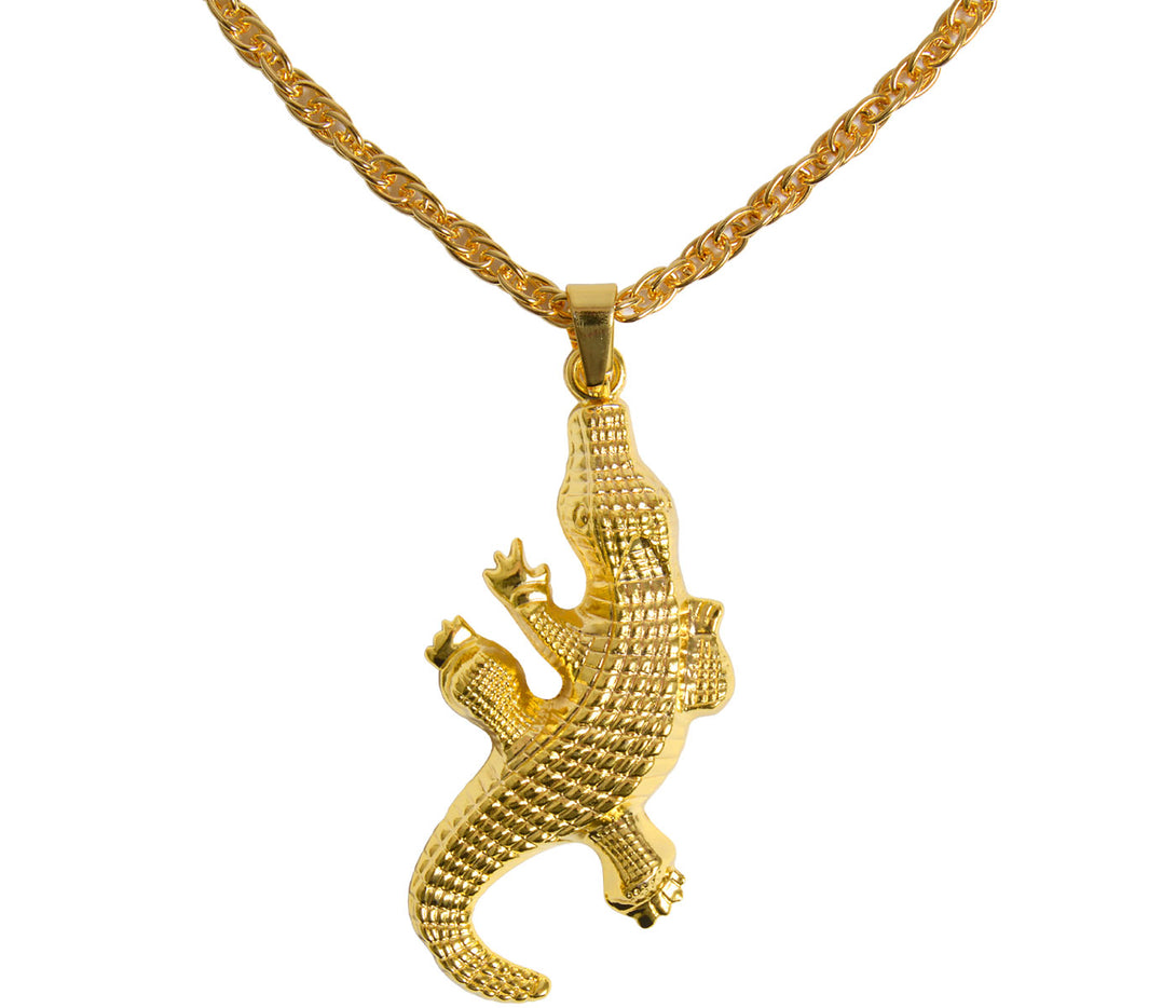 Auffällige Kette mit coolem Kokodil Anhänger lang