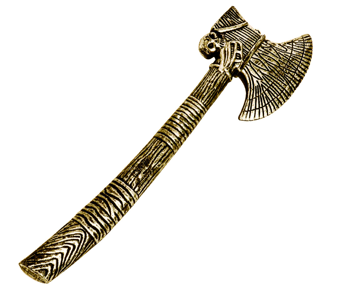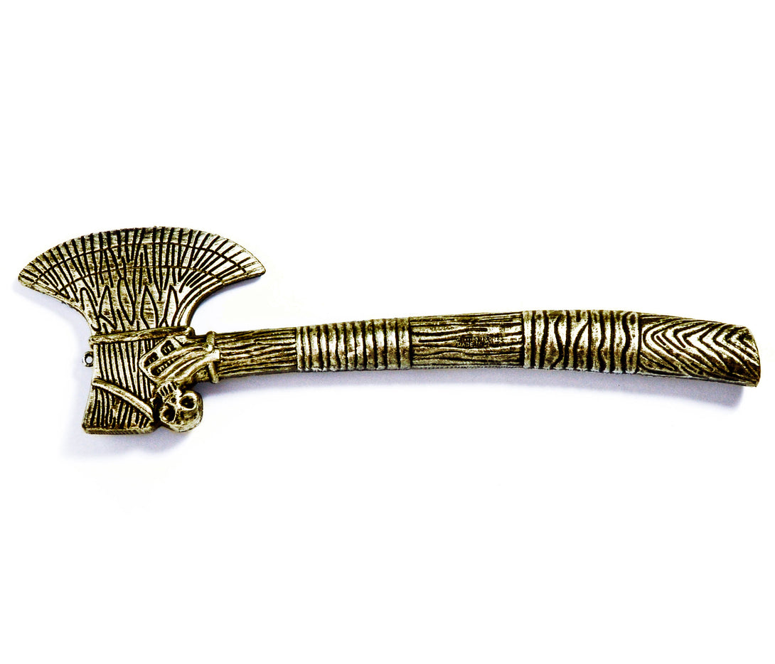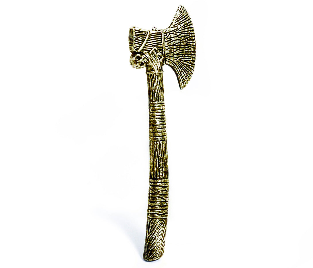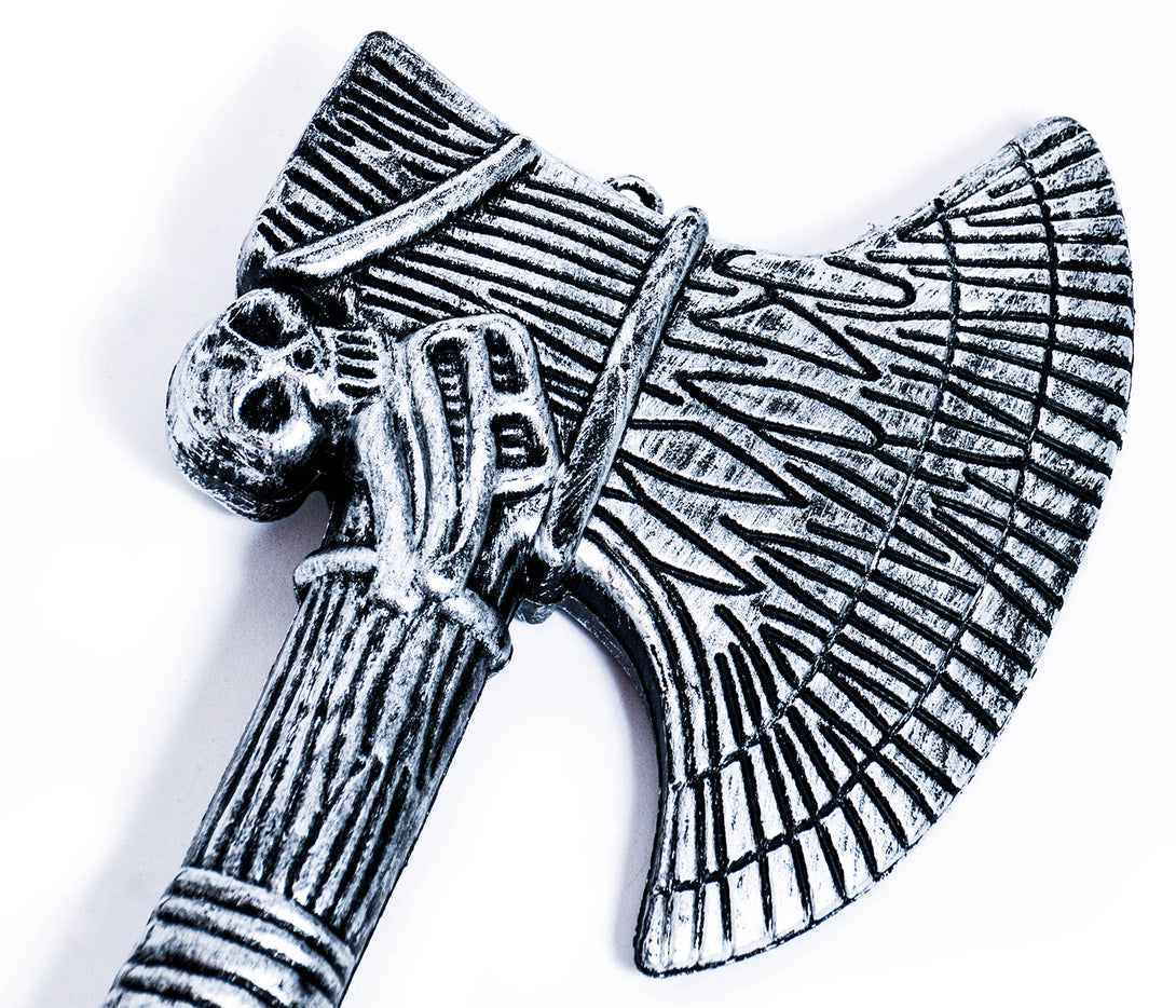 Axt mit Totenkopf aus robustem Plastik in Silber und Gold. Ideal zu Karnevalskostümen, Mittelalterfesten oder zum spielen mit Freunden. Durch die Verzierungen ist die Axt der Hingucker bei jedem Kostüm.