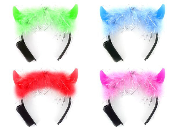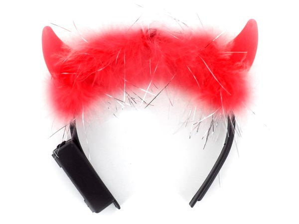 Blink LED Haarreifen mit Teufelshörnern, Federn und neuer LED Technik. Die Flashlight Blink Haarreifen sind ein lustiges Accessoire und der Knüller auf jeder Party. Damit fallen Sie immer und überall auf. Unsere bekannten und bewährten Haarreifen erhalten Sie jetzt auch mit der neusten LED Technologie in Verbindung mit Knopfzellenbetrieb. Stark verbesserter Tragekomfort durch den modifizierten Haarreif und besserer Blinkeffekt dank der neuen LED Technik! Die Blinkhaarreifen sind auch ideal für Halloween, Fasching bzw. Karneval als Karnevalskostüm, für Disko, Partys.